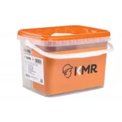 Pointes inox A4 28x70mm TB crantées tête bombée sur bande plastique 34°dans un seau étanche.