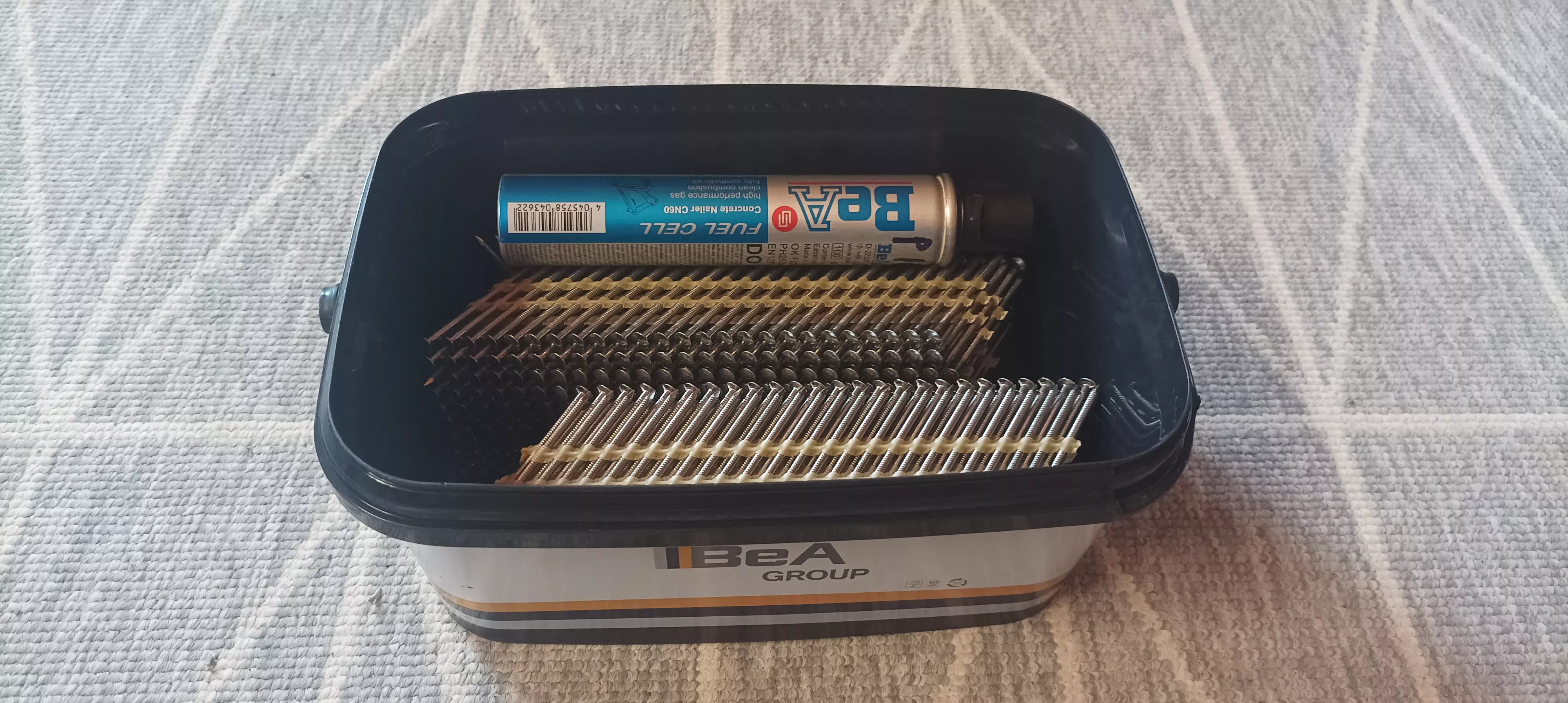 PACK Pointes inox A4 28x55mm TB crantées tête bombée sur bande plastique 34°dans un seau étanche +gaz
